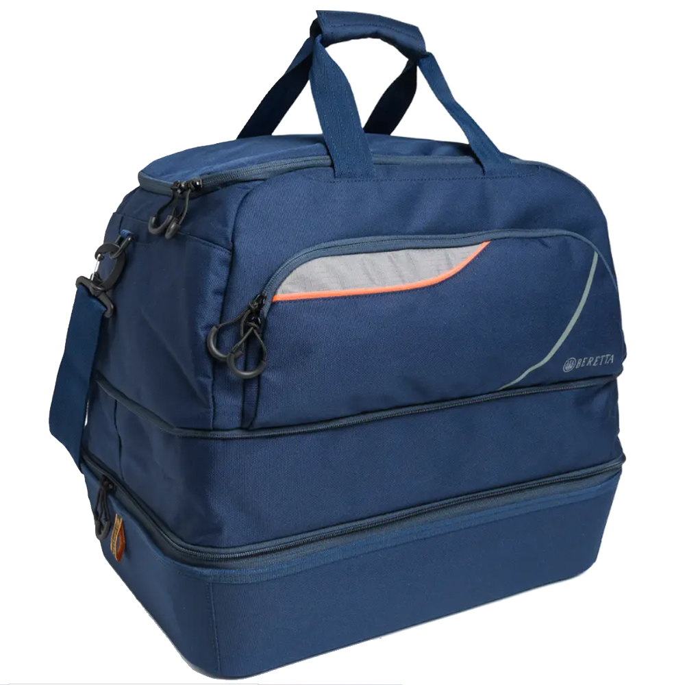 Borsone Beretta Uniform Pro EVO, espandibile con fondo apribile porta cartucce rigido e tasche laterali multifunzione. La linea di Accessori Uniform Pro EVO è stata appositamente progettata per il mondo del tiro, ed è realizzata interamente in poliestere 500x300 denari resistente all'acqua e ai graffi. BS402T1932054VUNI