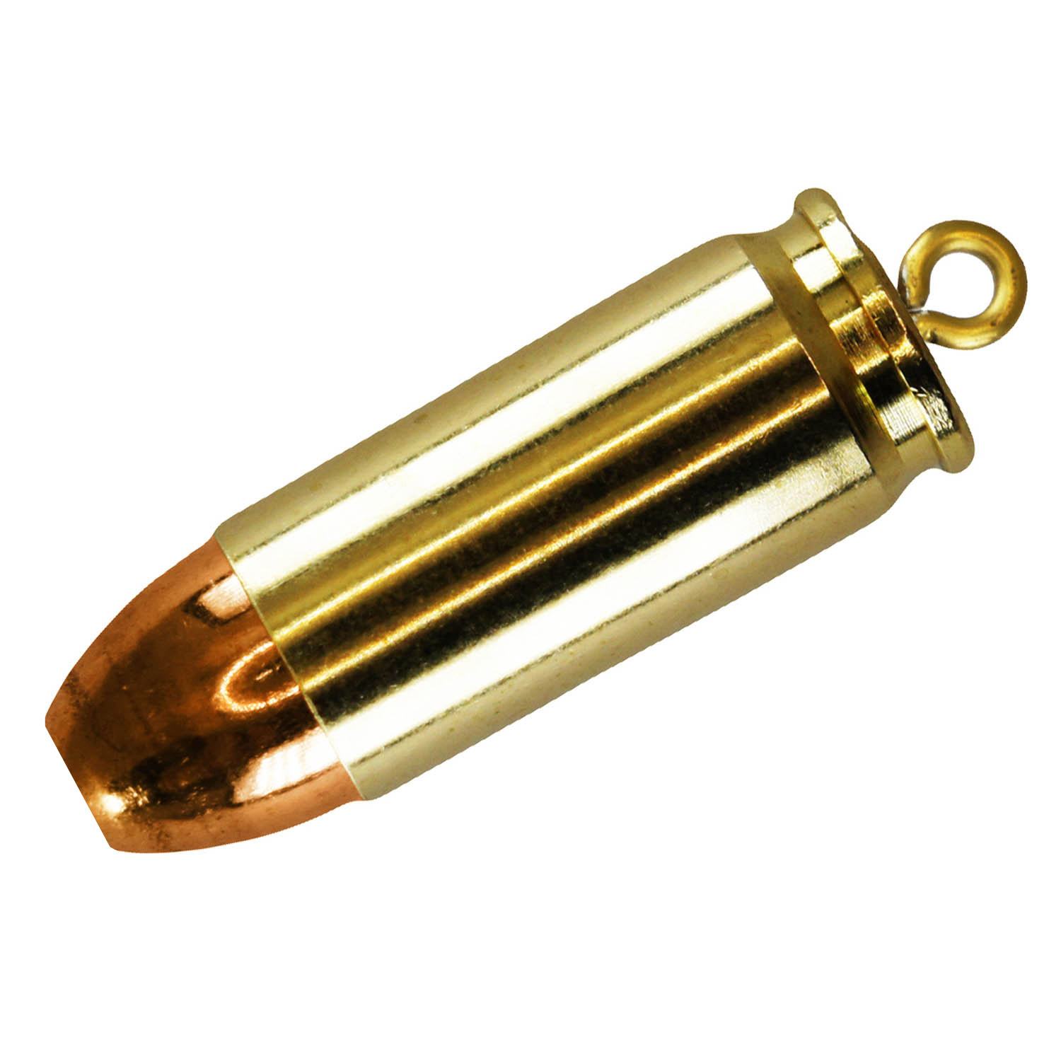 Ciondolo assemblato con bossolo e ogiva Fiocchi calibro 40. Puo' essere utilizzato come portachiavi o come pendente per collane, bracciali, borselli ecc.