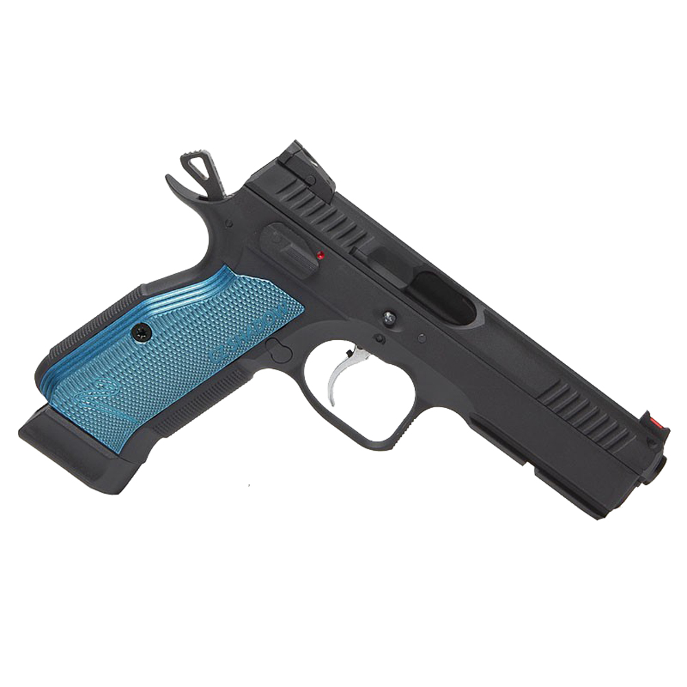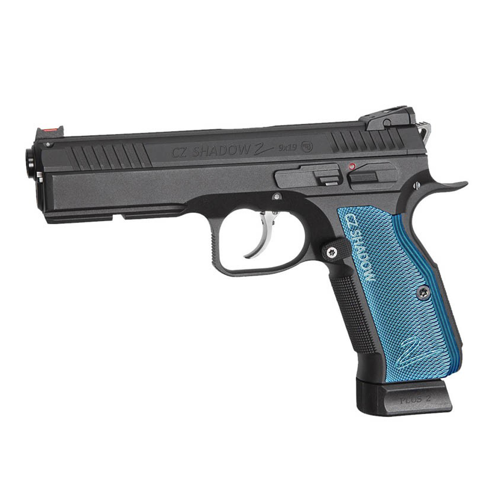 Pistola scarrelante calibro 4,5 con funzionamento a CO2 marca ASG modello CZ Shadow 2 . Pistola Full metal, scarrellante, singola e doppia azione, canna liscia in ottone da 95mm e caricatore da 17 BB. Lunghezza totale: 215 mm; Peso: 1230g. IAA130