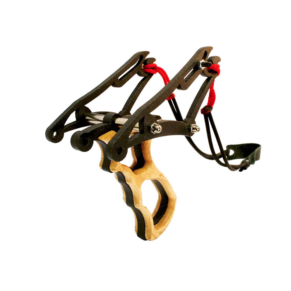 La sua peculiarità è data dalla sua conformazione strutturale e dal sistema di aggancio degli elastici. Questo sistema di innesto rapido degli elastici fa si che LUMBRO INVICTUS sia estremamente versatile nell’utilizzo con estrema adattabilità per varie distanze di tiro.