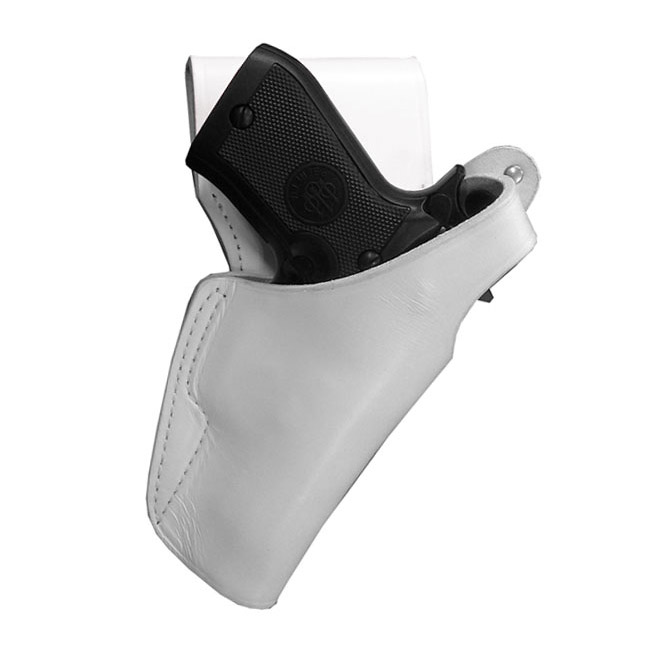 Fondina Radar da cintura per pistole serie 81/85 , destra, posizione medio bassa. Adatta per il porto in divisa anche con giubbetto antibalistico grazie alla sua anima semirigida che garantisce una posizione inclinata aderente al corpo. Realizzata in cuoio Premium Leather di alto spessore e di prima qualità, assicura ottime performance in ogni condizione d'uso e nel tempo. Chiusura di sicurezza rinforzata con leva di sgancio sensibilizzata per una migliore estrazione. Colore bianco.