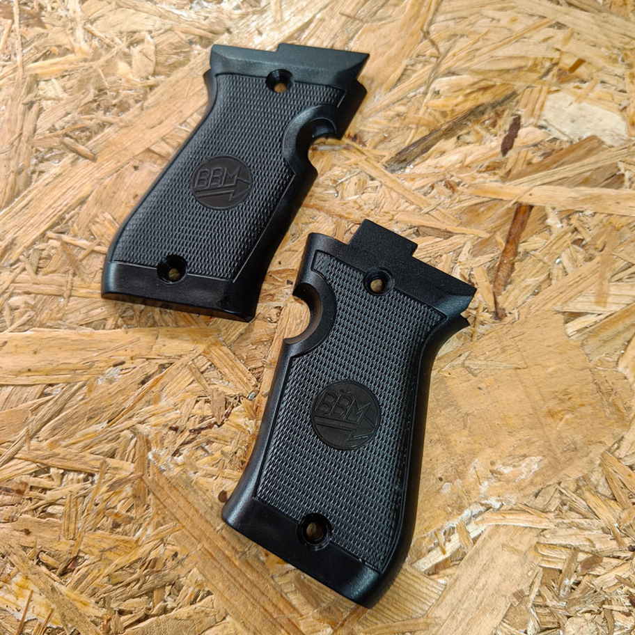 Guancette Bruni in plastica per pistola a salve modello 85. Viti incluse.