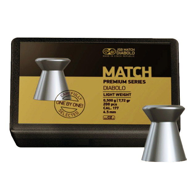 Diabolo Josef Schulz Bohumin calibro 4,51 mm modello Match Premium Series, in piombo liscio e con testa piatta. Il top della linea JSB, selezionati accuratamente e individualmente dai migliori lotti di produzione per garantire il massimo della performance. Allocati singolarmente in una pratica confezione richiudibile per garantire il massimo della comodità e della protezione dagli urti durante il trasporto. Peso: 0,500 g. Forniti in confezione da 200 pezzi.