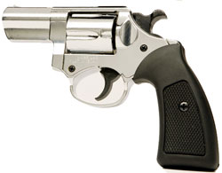Revolver a 5 colpi calibro 380 a salve "Kimar" modello Competitive, cromato, canna 2" 1/2, con funzionamento a singola e doppia azione. lunghezza totale 171 mm, corredato di valigetta in plastica. Simile per forma e dimensioni al Revolver RUGER SP101 INOX Inox. RP043315/tfc.