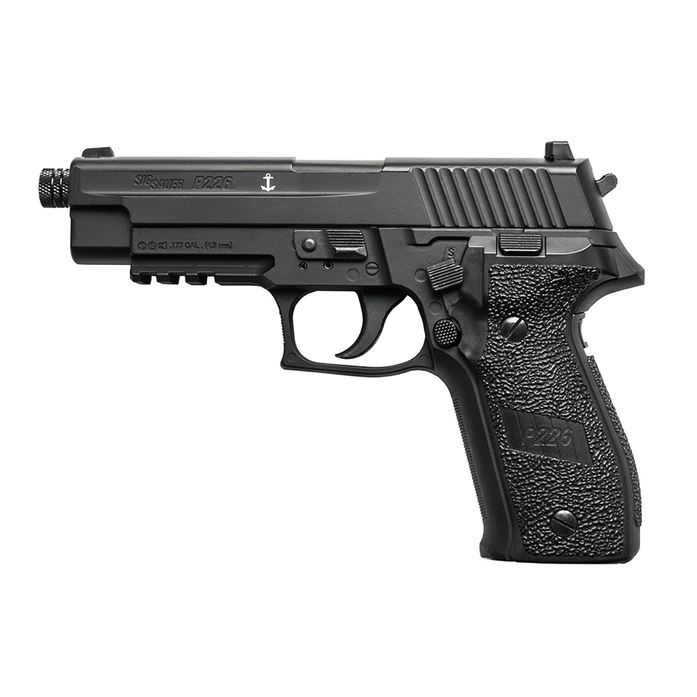 Pistola calibro 4,5 con funzionamento a CO2 modello Sig Sauer P226 Black, full metal, canna filettata, scarrellante e caricatore 8+8. 380186