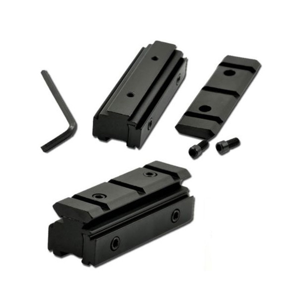 Questo prodotto può essere utilizzato sia come slitta di rialzo da 11mm (svitando le due brugole che reggono la slitta weaver), sia come slitta converter per trasformare la scina dei fucili o delle carabine da 11mm a weaver . Completamente in alluminio; lunghezza 7 cm.