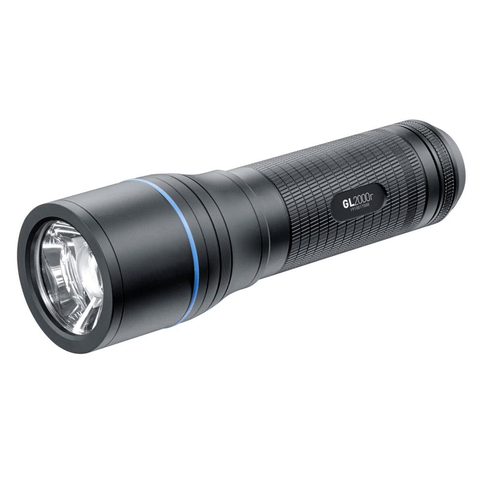 Torcia Walther modello GL2000R realizzata in alluminio aereonautico, dotata di un led Cree XHP50 da 2700 lumens con un raggio d'azione fino a 400 metri, e con fuoco regolabile tramite la campana scorrevole e bloccabile. Questa torcia ha quattro livelli di luminosità (100%, 40%, 10%, e modalita luna da 10 lumens, ideale per per leggere per esempio in una tenda), inoltre ha la funzione tactical defence strobe e una funzione che lampeggia a intervalli di due secondi. Fornita con tre batterie ricaricabile ICR 18650 da 3,7 V, cavo usb, caricabatterie da 12 V, passante con anello per cintura, valigetta rigida per trasporto. Grado di resistenza all'acqua IPX4. Lunghezza 200 mm; diametro impugnatura 45,5 mm; diametro campana 59 mm; Peso 485 grammi. 692636